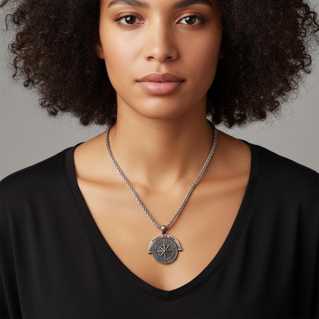 Compass Pendant Necklace, Trust No One Necklace, Unisex Sterling Silver Chain, Minimalist Boho Jewelry, Gift for Him or Her, Everyday Charm