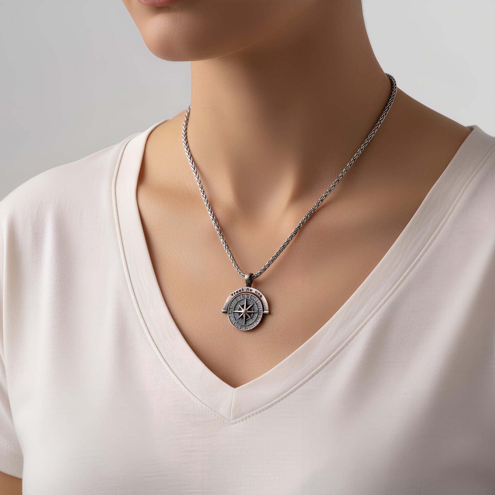 WHAT/WHY: Crafted from genuine 925 Sterling Silver, this piece features a sleek Compass Pendant, a classic symbol of guidance and protection. Its unique, optional message ("Trust No One") adds a layer of mystery and strength, embodying self-reliance.